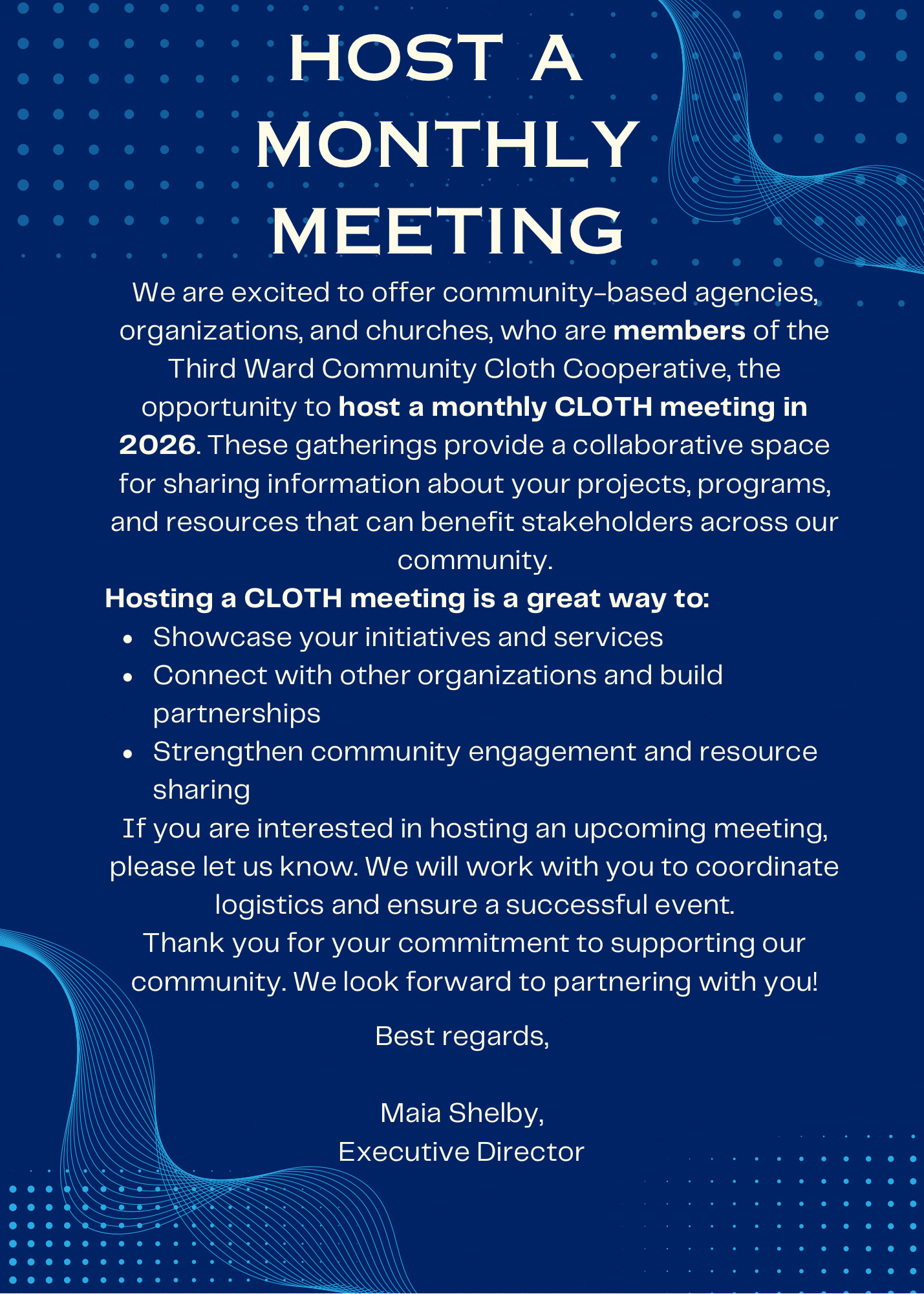 The strength of The Cloth lies in the collective efforts of its members. Together, we can accomplish amazing things in Third Ward and beyond. Every member plays an essential role in pushing our shared vision forward from raising awareness to organizing local events and advocating for change. The more we unite, the greater the impact we have.